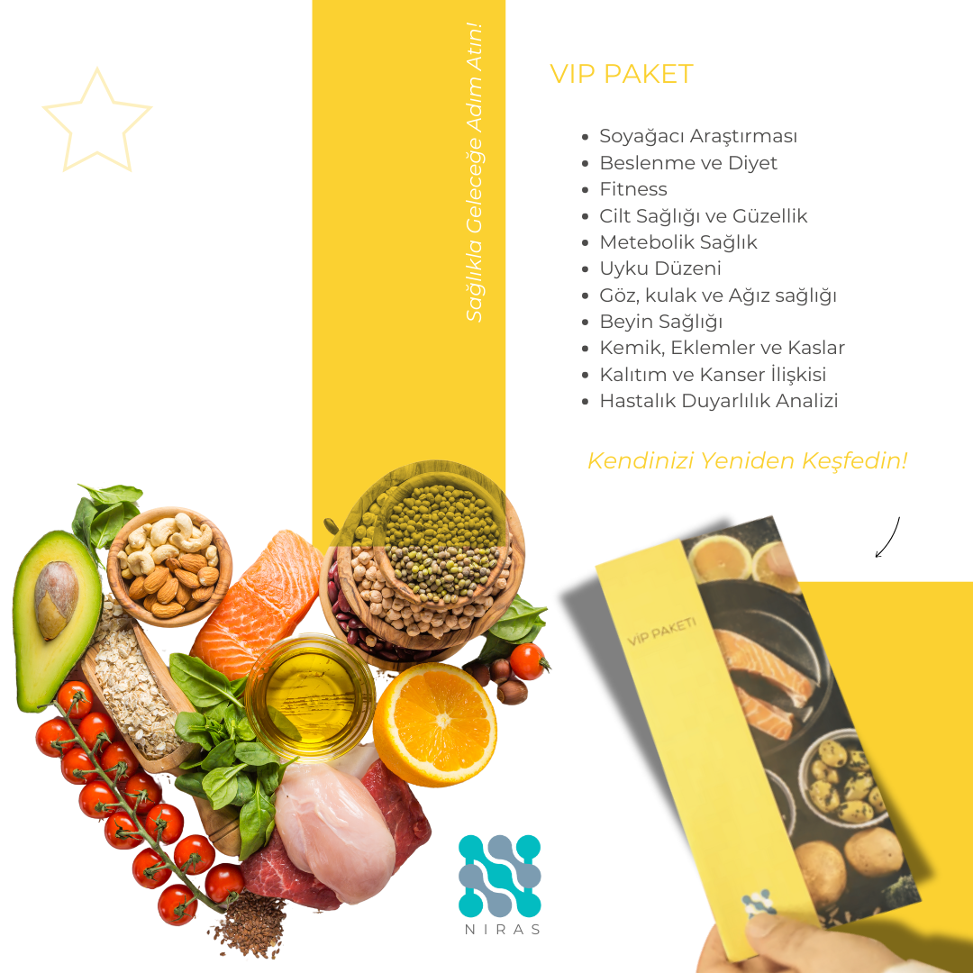 Niras Genetik, genetik mirasınızı anlamanızı ve bu bilgiyle sağlık, beslenme düzeni, spor performansı, uyku düzeni, cilt sağlığı, genetik hastalıklar gibi alanlarda bilinçli kararlar almanız için tasarlanmış bir yaşam rehberidir.